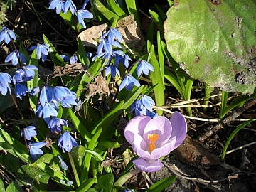 Tussilago,scilla ,krokusar våren är alltid lite senare här i backen inga påskliljor ännu .